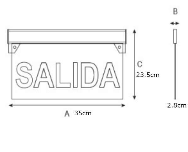 Señaletica salida emergencia led, equipo cuenta con batería de energía para momentos de cortes de energía. Su autonomía es de 90 minutos. Incluye argollas para colgar.